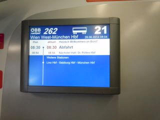 レイルジェットの座席 液晶表示パネル ドイツ、ミュンヘンまで行く 国際列車